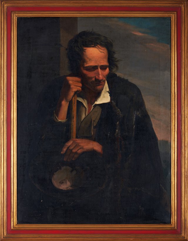 A obra em causa, uma pintura a óleo sobre tela intitulada “Um pobre cego (do natural)”, data de 1852 e valeu ao seu autor, o pintor Francisco Pinto da Costa (1826-1869), uma bolsa de estudos em Paris, concedida por D. Fernando II. Apresentada ao monarca como prova de mérito, a pintura retrata "Um pobre cego (do natural)", ou seja, alguém que existiu.